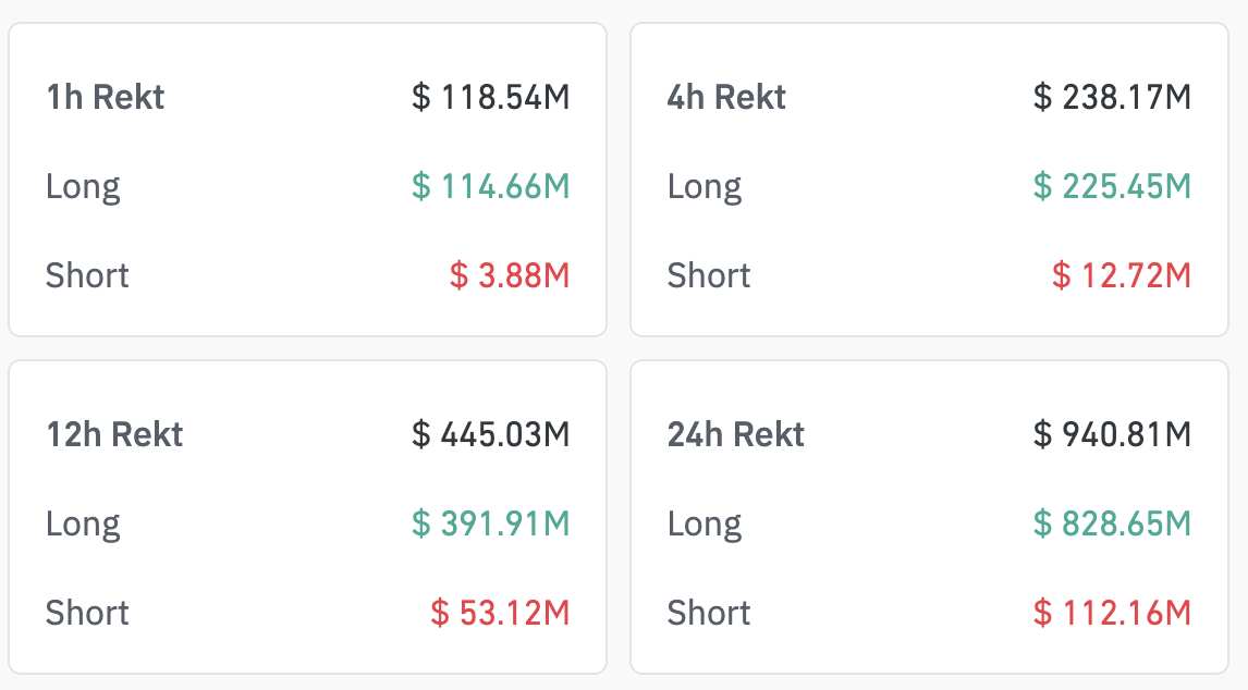 Coinglass数据显示,过去24小时爆仓总额达9.408亿,其中以太坊多头爆仓1.68亿美元,XRP多头爆仓9270万美元。比特币爆仓7350万美元,其中5740万美元为多头仓位。