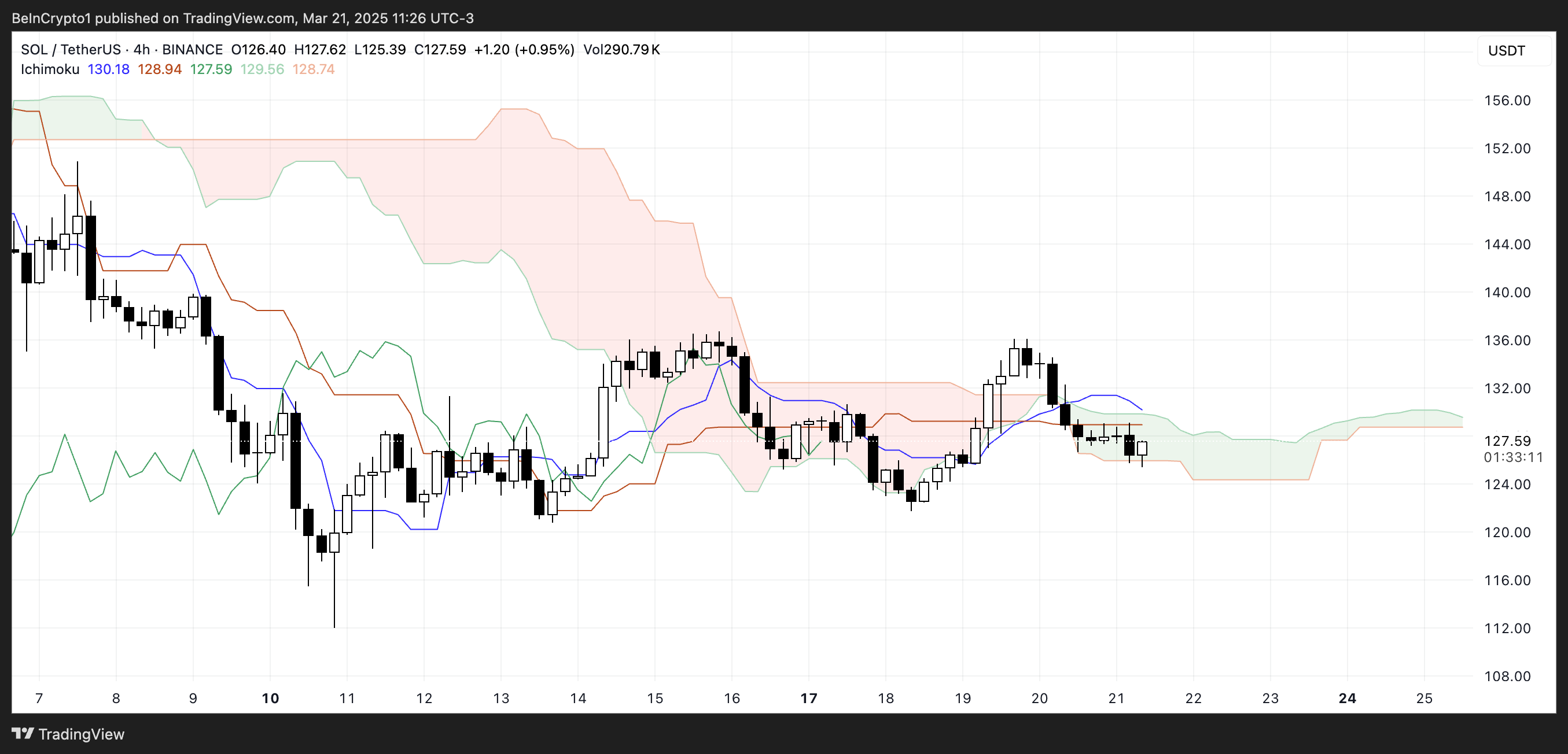 此外,迟滞线(绿线)位于价格和云层下方,强化了看跌情绪。价格在云层下边界附近徘徊,如果Solana试图反弹,这可能成为即时阻力位。