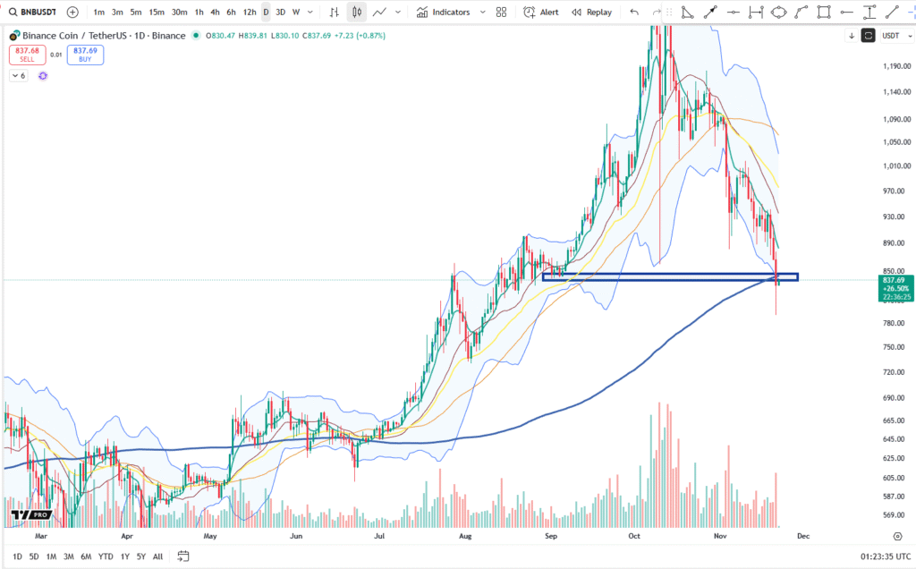 BNB触及890美元支撑位,创2025年6月以来首次下探200日均线