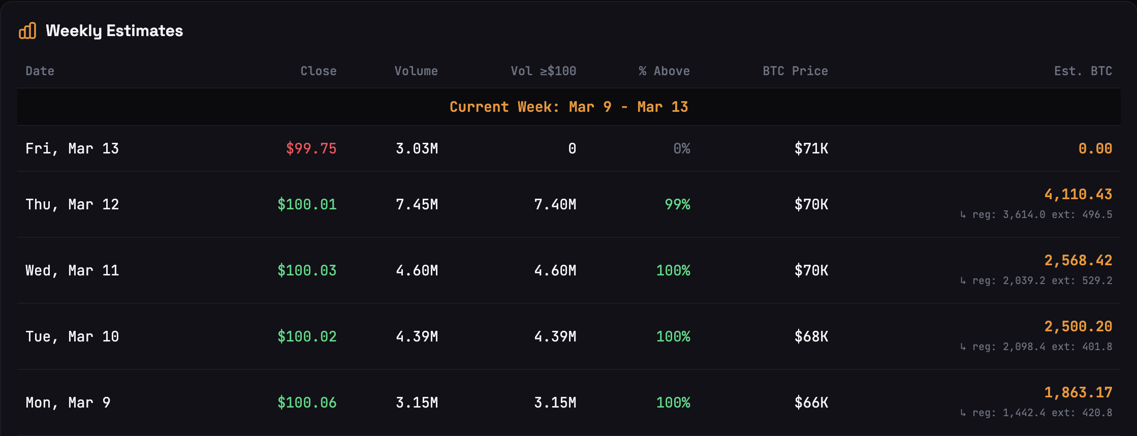 这种分化出现之际,STRC.LIVE数据显示Strategy本周可能已通过STRC工具筹集充足资金,按当前价格计算约合7.76亿美元比特币购买力。