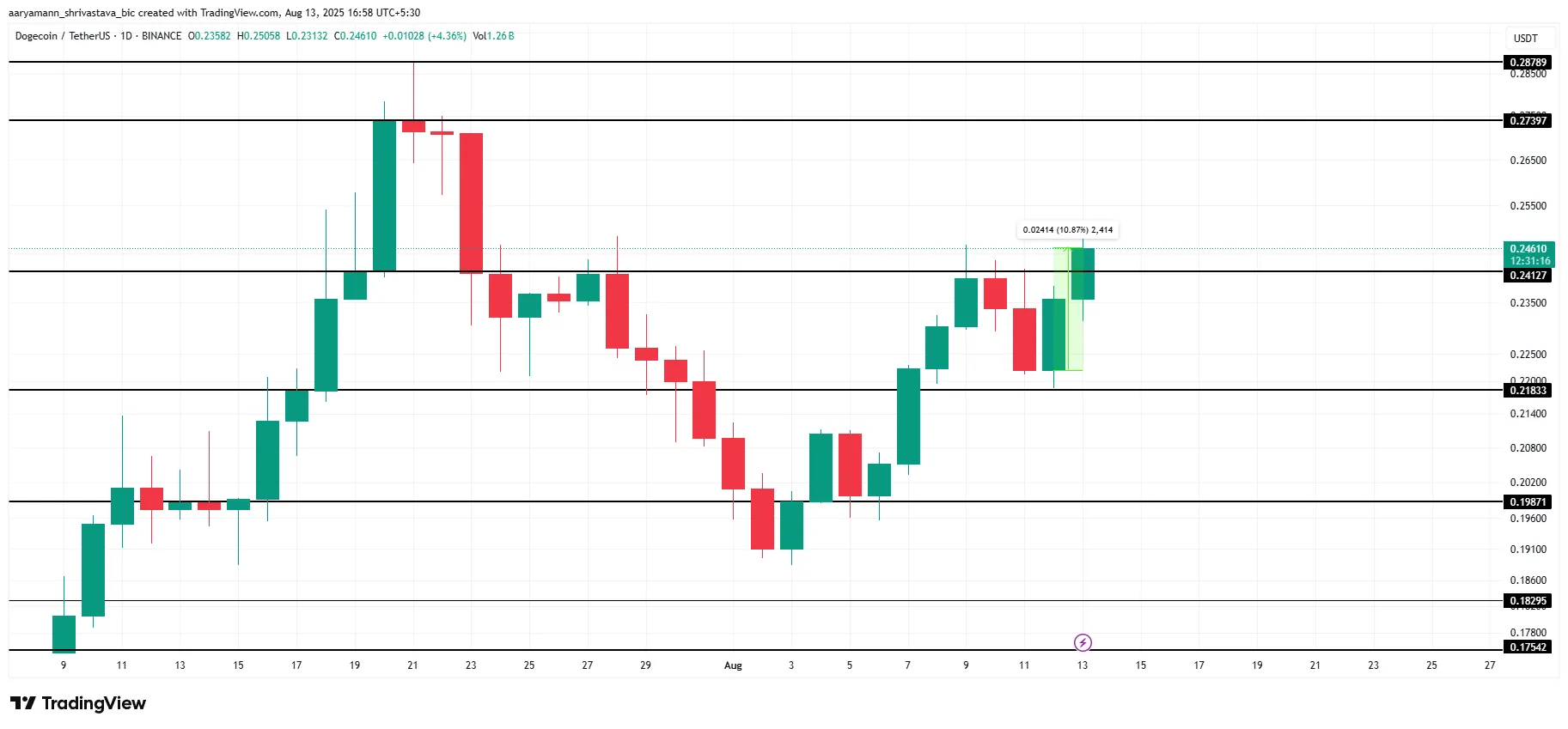 截至发稿时,狗狗币报价0.246美元,成功突破0.241美元阻力位。要维持上涨动能,需将该价位转化为强力支撑。若能站稳0.241美元上方,下一关键阻力位将见于0.273美元。巨鲸持续吸筹有望推动价格测试该阻力位,若黄金交叉持续释放看涨信号,价格或实现进一步突破。