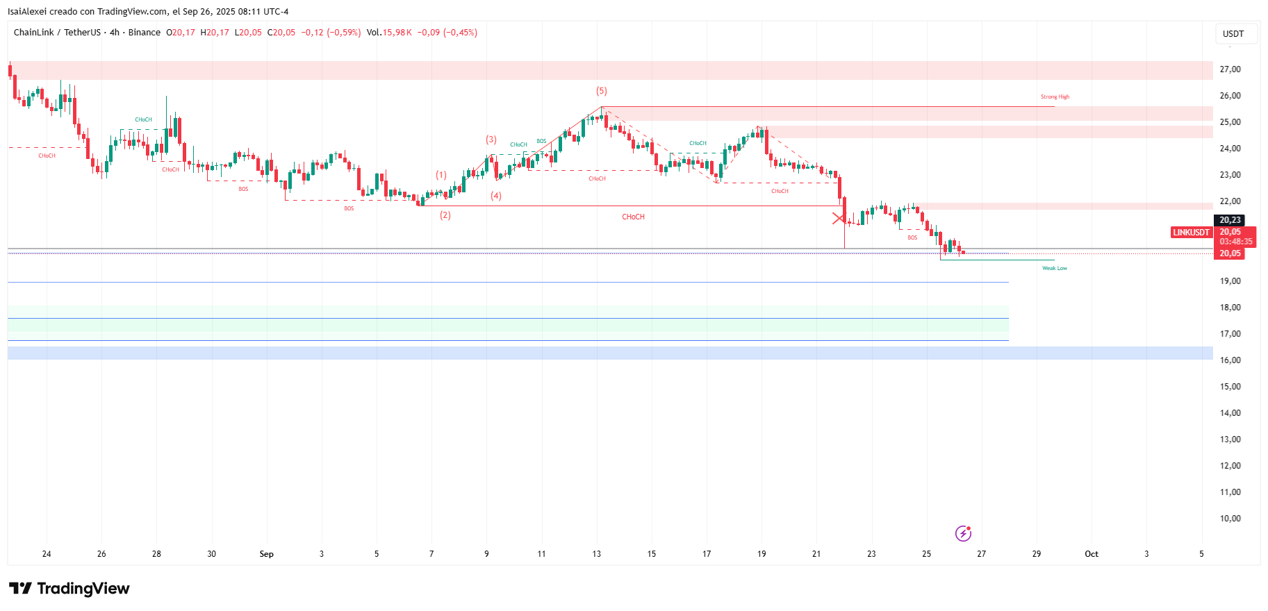 经历深度回调后,LINK现报20.17美元,日内微涨0.11%。本周累计下跌18%,较近期26美元高点回落近20%,当前市值136.9亿美元,24小时交易量11.5亿美元。