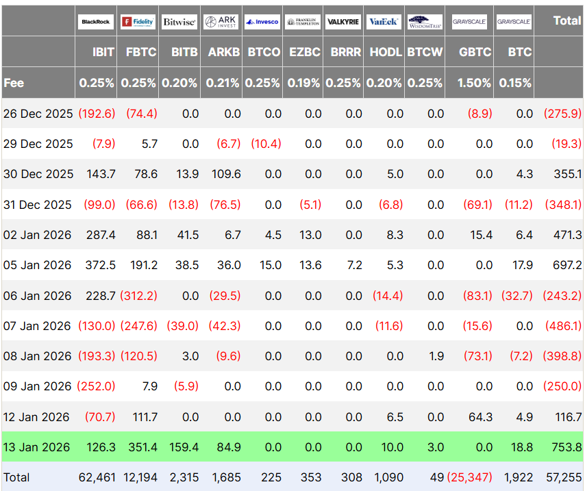 根据Farside Investors的数据,在经历连续四天的资金流出后,美国上市的现货比特币(BTC)ETF于周二录得7.53亿美元流入,实现连续两日净流入。进入2026年以来,比特币ETF需求持续波动,截至目前累计净流入6.6亿美元。