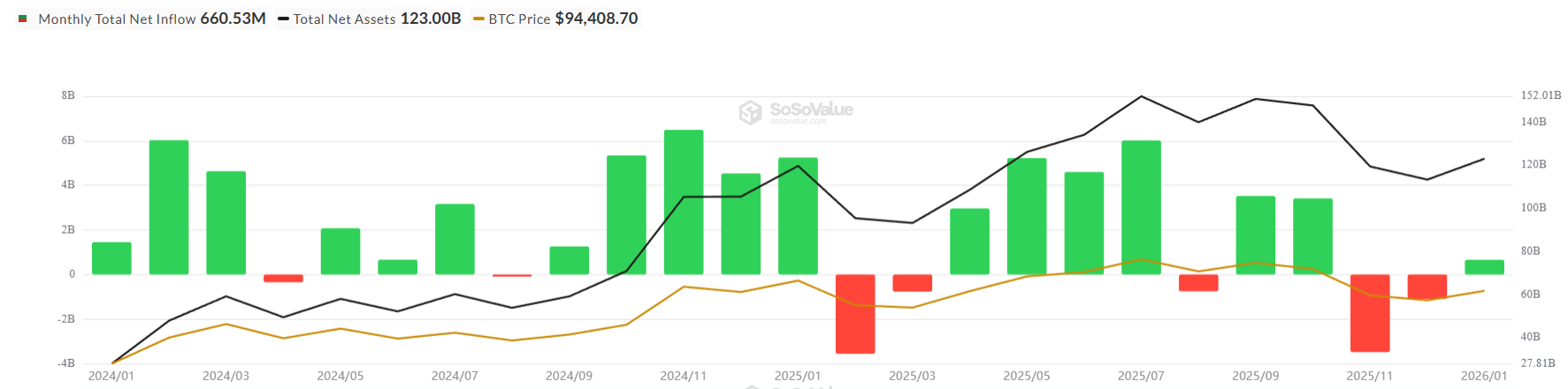 比特币ETF在2026年初表现震荡
