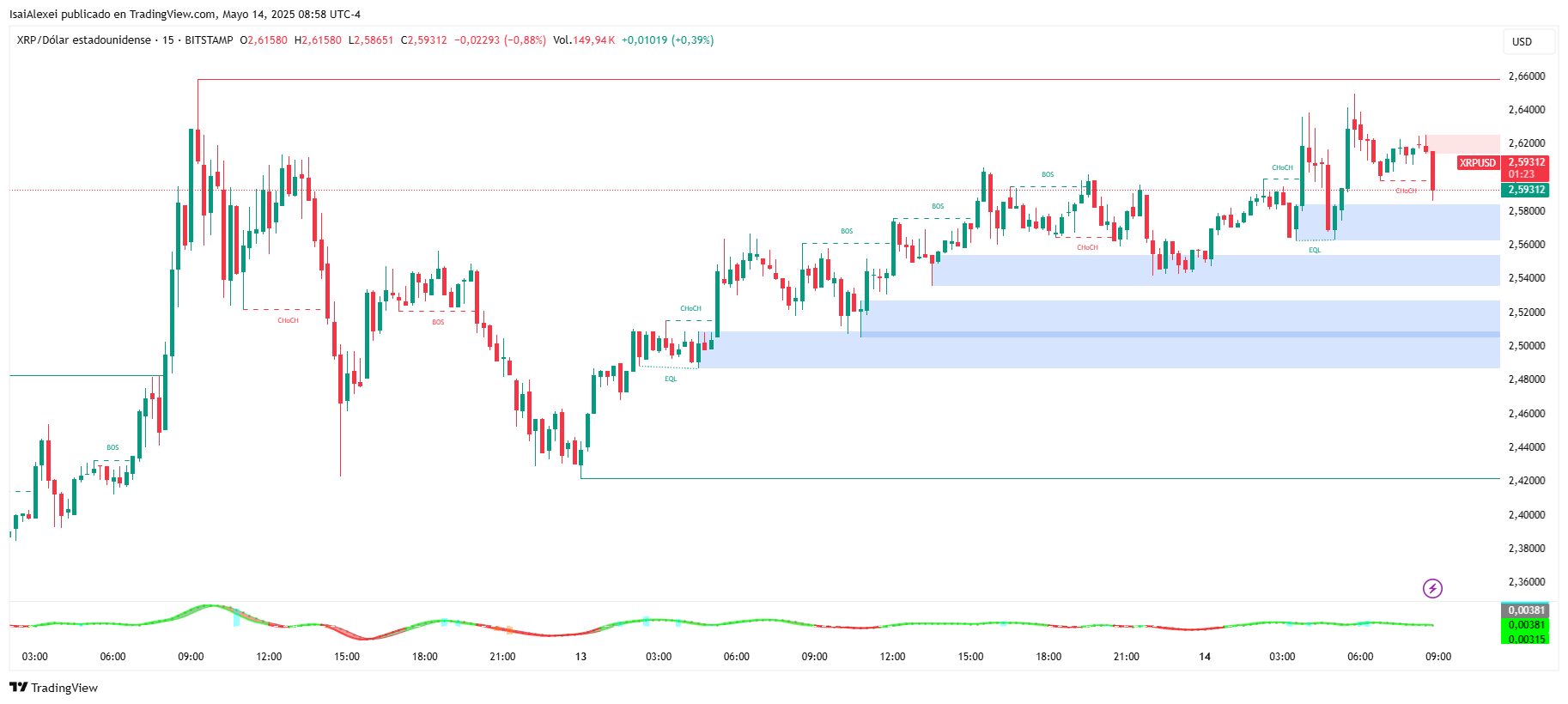 从技术角度来看,XRP已突破多年的楔形形态,标志着重大结构转变。目前正在2.60美元的心理阻力位下方盘整,下一个重要目标预计在2.88美元和3.40美元。ETHNews分析师越来越多地关注斐波那契扩展,将长期目标定在8.40美元,如果势头和采用率继续一致,甚至可能达到27.23美元。交易量保持强劲,指标显示看涨倾向,没有立即超买信号。