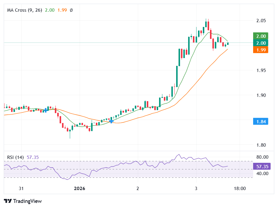 截至发稿时,XRP交易价格为2.01美元,在此期间涨幅达5.8%。同期交易量也出现大幅飙升,增幅超过192%,达到41.9亿美元。这一发展表明市场参与者的交易活动日益活跃,似乎重新燃起了对该资产的兴趣。