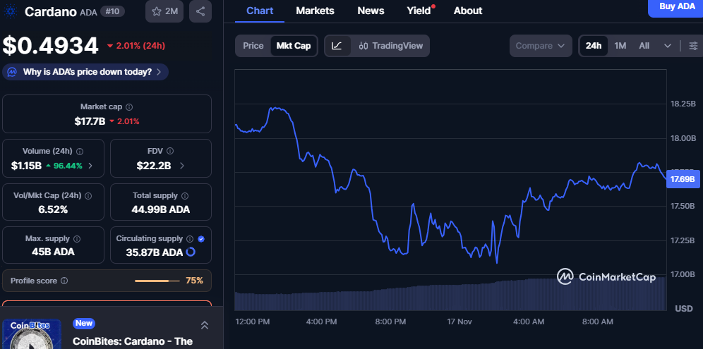 进入后续交易时段,卡尔达诺正位于前支撑基底之下的关键分水岭。过去24小时的高活跃度显示市场正在消化破位影响。这使ADA处于重要转折点,后续价格走势或将决定短期方向乃至更长期的趋势发展。