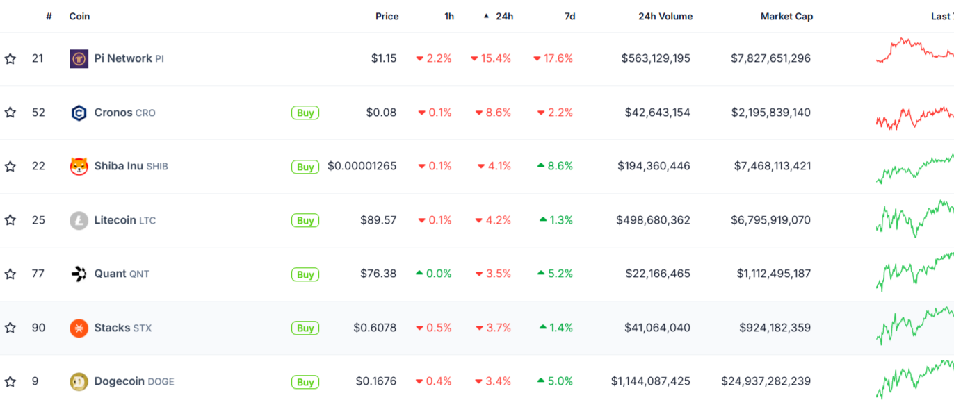 今日加密货币市场表现低迷,市值排名前100的加密资产中,两大迷因币领头羊——狗狗币(DOGE)与柴犬币(SHIB)双双位列表现最差榜单。与此同时,曾经风头无两的Floki(FLOKI)、Dogwifhat(WIF)以及Murad推荐的SPX6900(SPX)等迷因币也在百强榜单中逐渐失去活力。