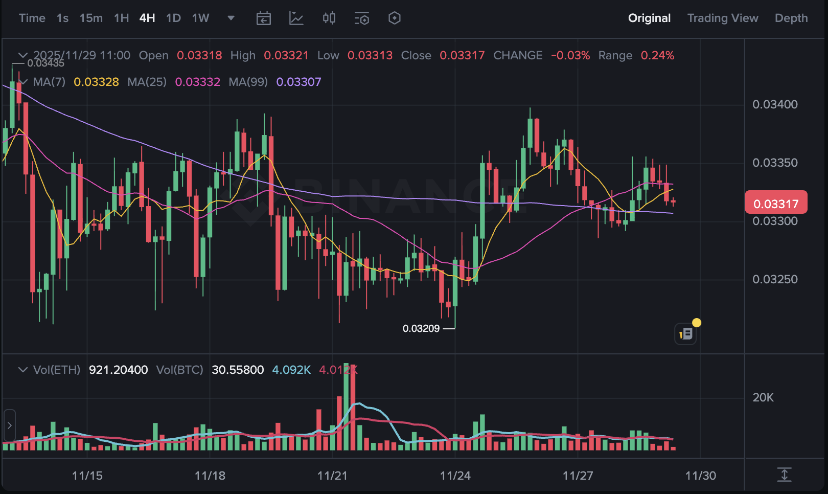 市场数据同样印证了这一技术场景。根据CoinMarketCap数据,以太坊日内上涨约0.5%,成交额超过190亿美元。超过30%的成交量增幅表明突破背后存在强劲的买方需求。分析师认为,若该货币对能稳守于突破的趋势线上方,短期目标位可能上看0.038至0.040区间。