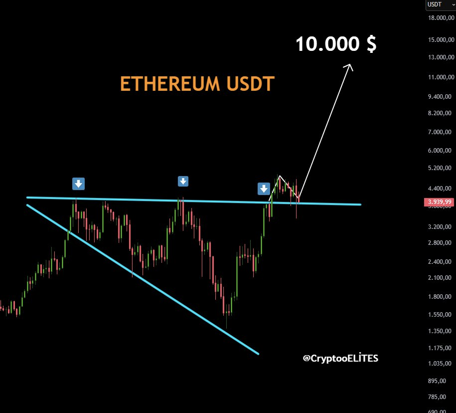 随着分析师观察到加密货币将多年阻力位转化为支撑位,以太坊(ETH)已进入关键突破阶段。这一转变点燃市场乐观情绪,部分交易员预测价格可能攀升至1万美元大关。