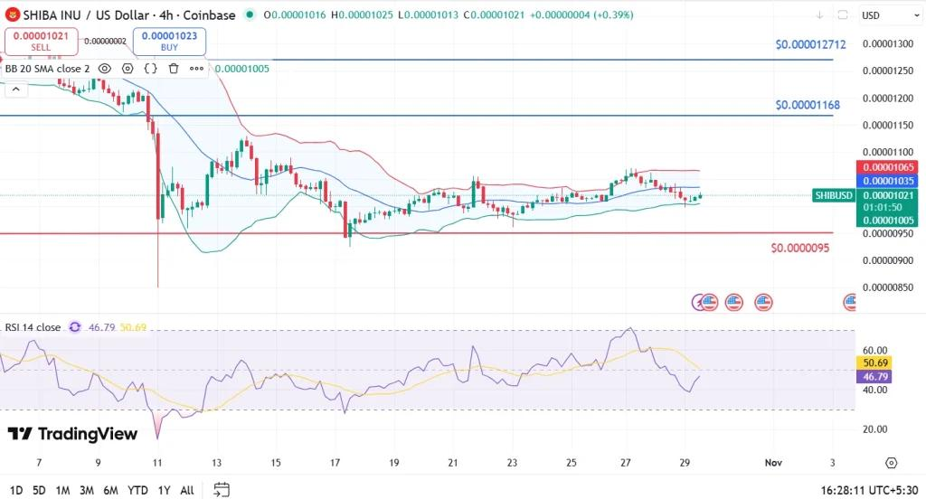 SHIB虽从0.00001002美元低点反弹,但未能突破0.00001041美元阻力区。