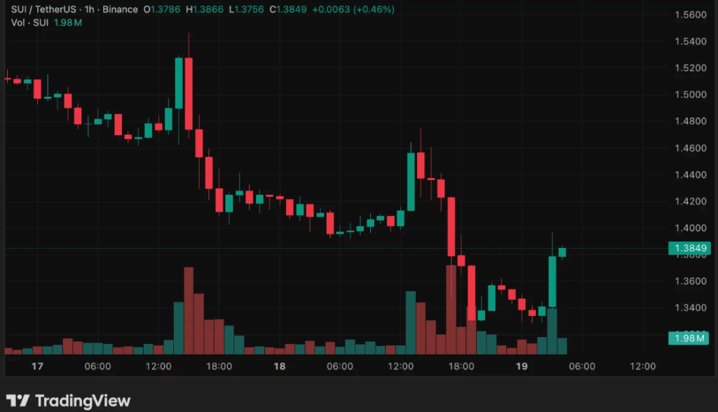 自12月初持续走低的SUI价格在申请消息公布后强势反弹。截至周四晚间,价格从1.33美元附近的低点飙升逾4.5%。这一价格走势反映出市场对该代币的乐观情绪正在升温,特别是在机构对SUI兴趣日益增长的背景下。