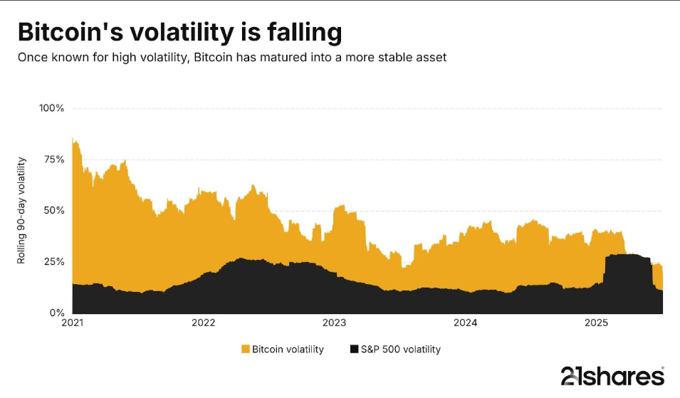 虽然比特币年度波动率仍维持在50%左右,但较2013年181%的疯狂水平已大幅回落。当前特斯拉(65%)、超微半导体(73%)和超微电脑(73%)等科技股的波动幅度甚至更为剧烈。近期市场动荡期间,标普500指数的波动率曾一度超越比特币。