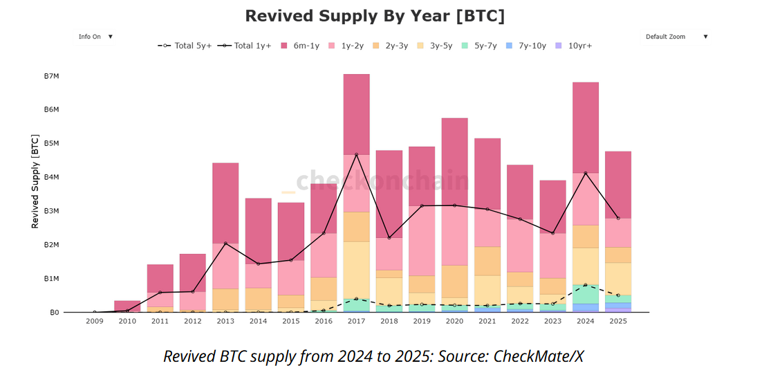 深入分析链上数据后发现,关于比特币早期信仰者大规模撤离的说法并不成立。证据显示,2024-2025年间移动的1060万枚BTC中,绝大多数来自持有时间较短者,而非所谓"比特币元老"。