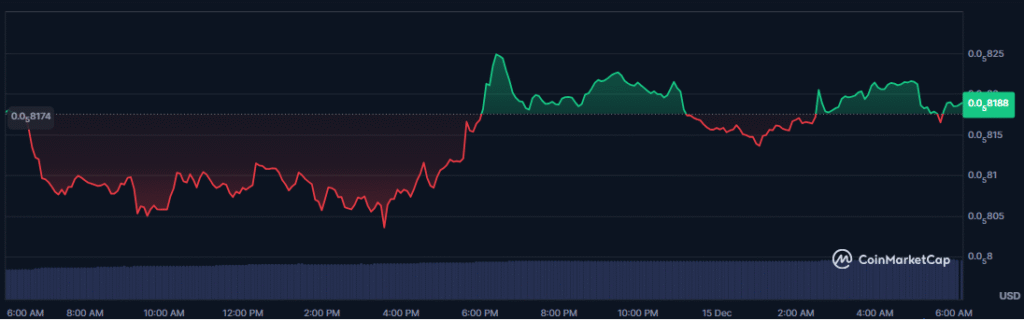 Nansen数据显示,交易所持有的SHIB供应量在30天内下降21%。鲸鱼钱包自12月低点以来增持超过960亿枚SHIB。根据最新CoinMarketCap图表数据,柴犬币交易价格维持在0.00000819美元附近。由于价格持续在近期市场活动中形成的明确下降通道内运行,目前仍面临压力。