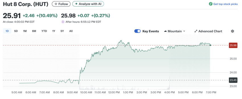 比特币挖矿及数字基础设施公司Hut 8(股票代码:HUT)周二宣布将通过四个美国新站点实现电力容量翻倍后股价大涨。这些由24亿美元流动性框架支持的项目,将巩固该公司在比特币挖矿和数字基础设施领域的地位。