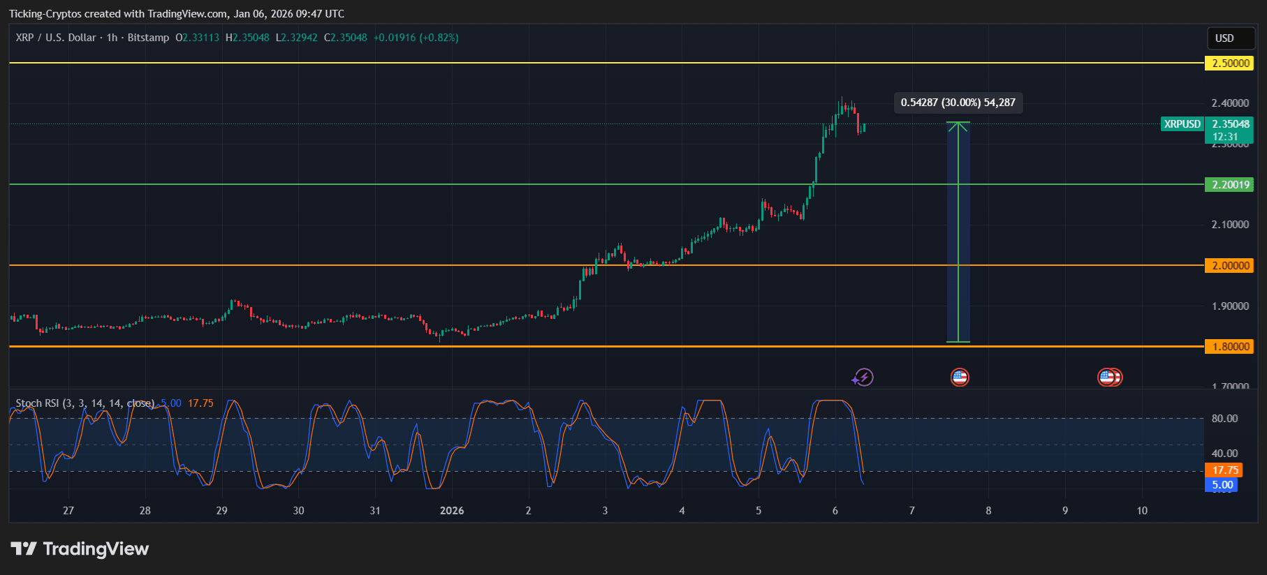 • 强劲脉冲行情推动XRP迈向2.35–2.40美元区间