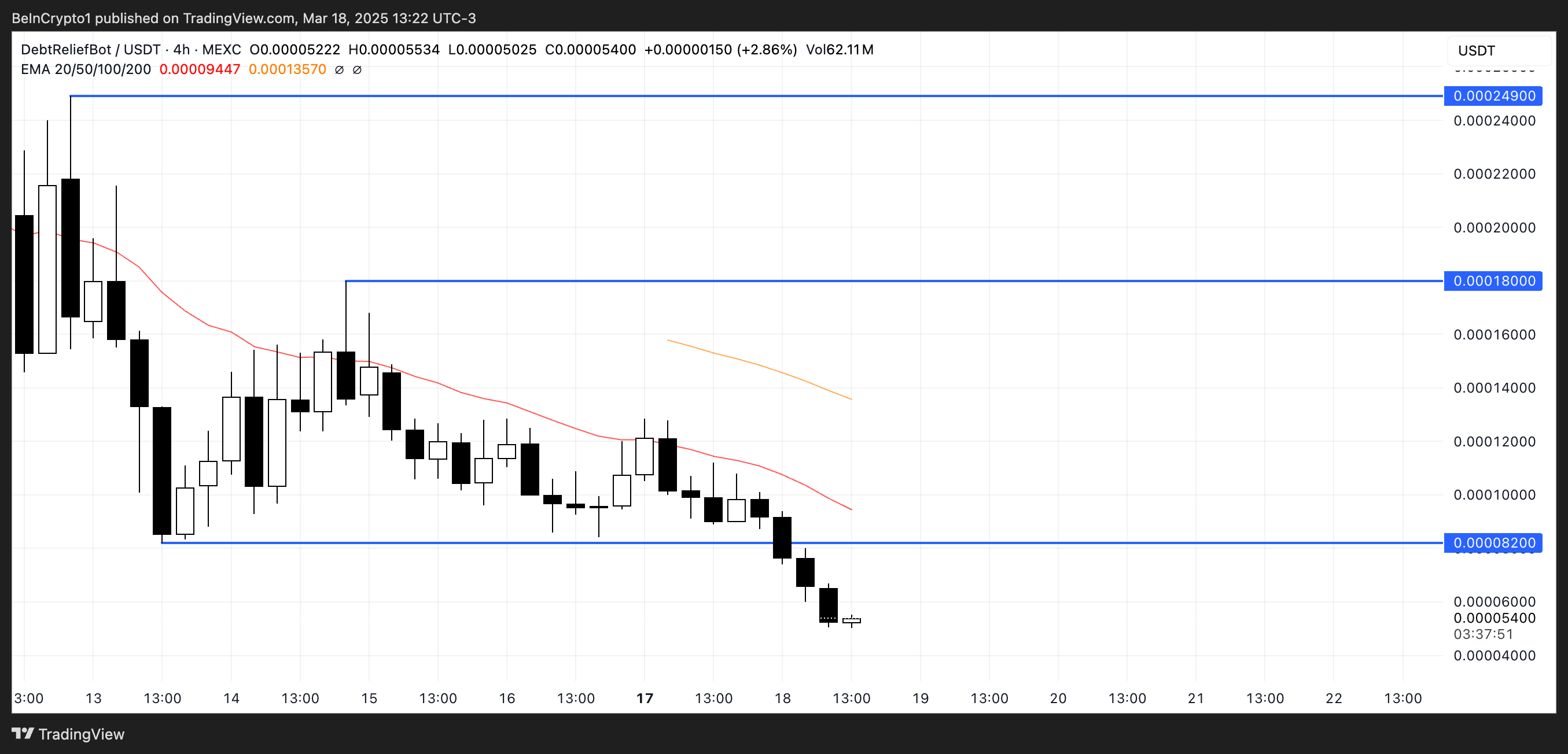 目前,DRB的市值为520万美元,日交易量达到250万美元。尽管交易活跃,但DRB仍接近历史低点,显示出看跌压力。如果趋势反转,DRB可能测试0.000082美元和0.00018美元的阻力位。强势突破甚至可能推动价格向0.000249美元迈进,这将标志着从其当前低点的显著回升。