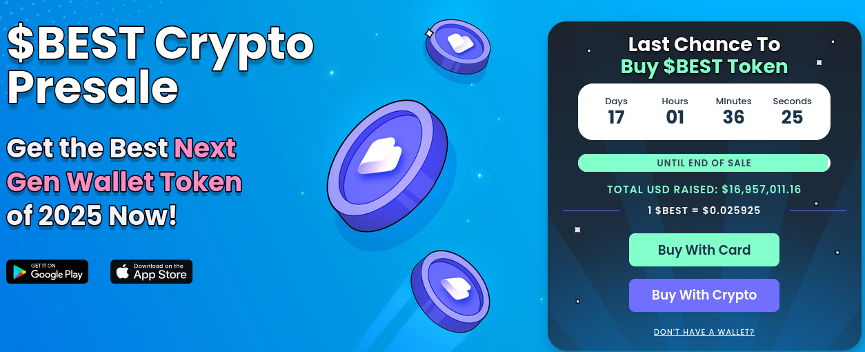 Best Wallet Token通过应用优先的用户体验和$BEST持有者权益,瞄准钱包使用瓶颈,随着采用范围扩大将形成正向循环。预售数据目前已筹集近1700万美元,为加密支付的扩张提供了结构化参与机会。