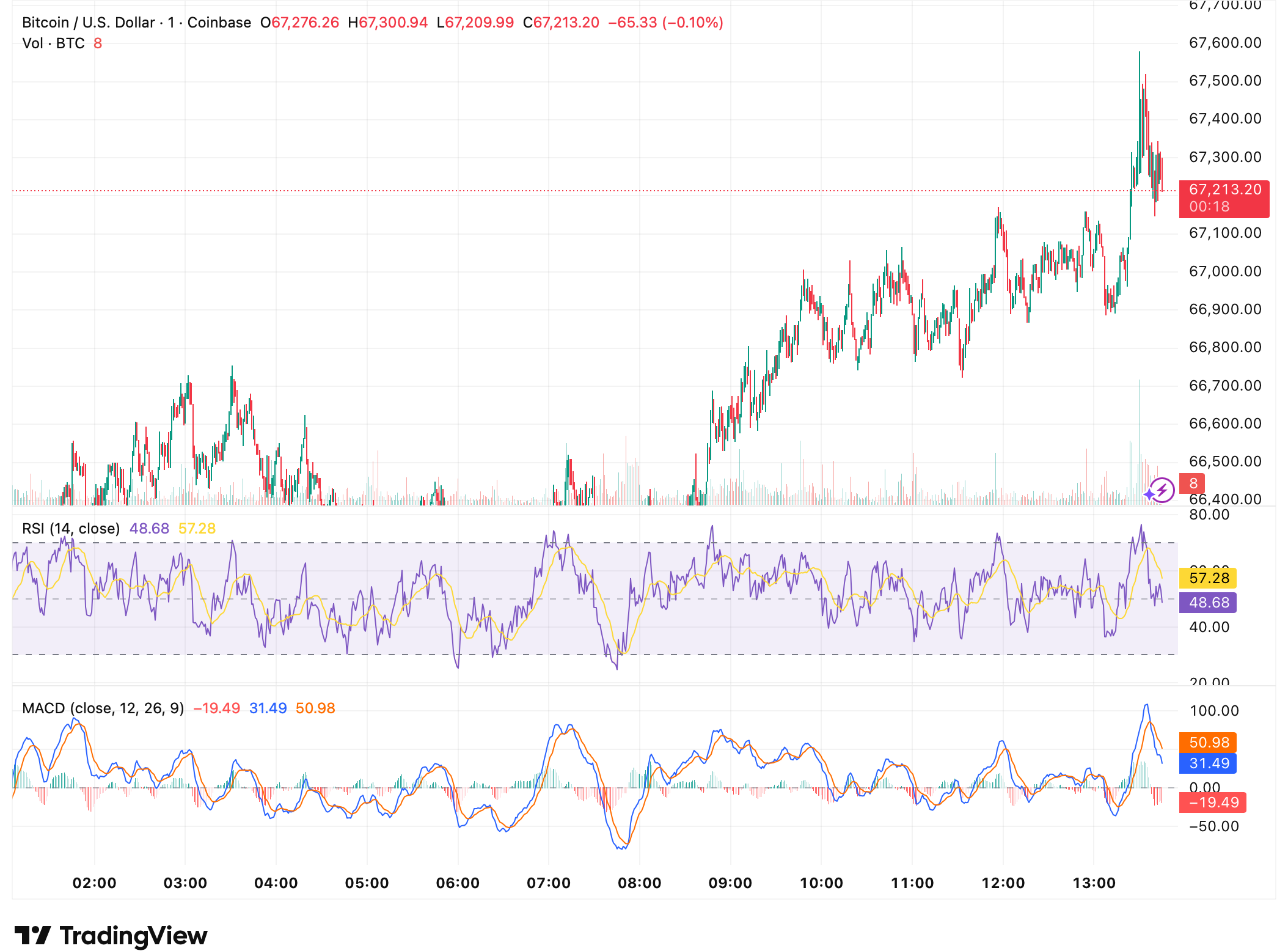 截至撰写时,比特币近期突破67000美元后进入盘整,其相对强弱指数在中性区域附近徘徊,移动平均收敛背离指标在短期冲高后显示动能有所放缓。主权积累的叙事与技术面的韧性相结合,可能在短期内持续吸引市场对该资产的关注。