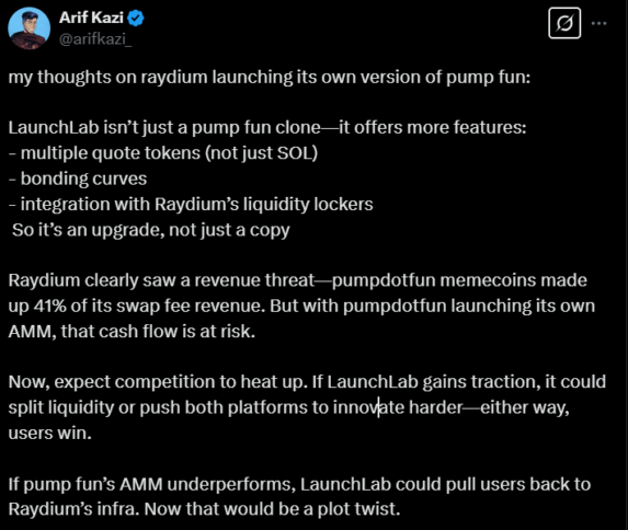 Infra解释道:"LaunchLab并不是要取代Pump或其他平台,而是为那些不想从头开始构建的团队,以及更倾向于使用Raydium AMM v4迁移池的Pump用户提供一个替代选择。"