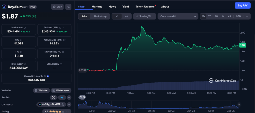 RAYUSD价格走势图 | 来源:CoinMarketCap