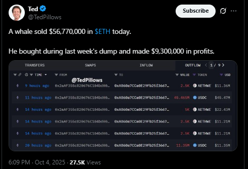 尽管整体乐观,大额钱包交易仍持续影响ETH市场。分析师@TedPillows披露某鲸鱼抛售价值5,600万美元的ETH,通过月初在4,000美元附近抄底获利约900万美元。2025年学术研究显示,集中式钱包活动可能使以太坊在活跃交易时段的波动率增加20%。分析师认为这类行为属于长期看涨趋势中的短期获利了结,虽然会造成局部回调,但被视为健康市场轮动的组成部分。早期买家获利了结为新入场者提供流动性,避免价格过热。