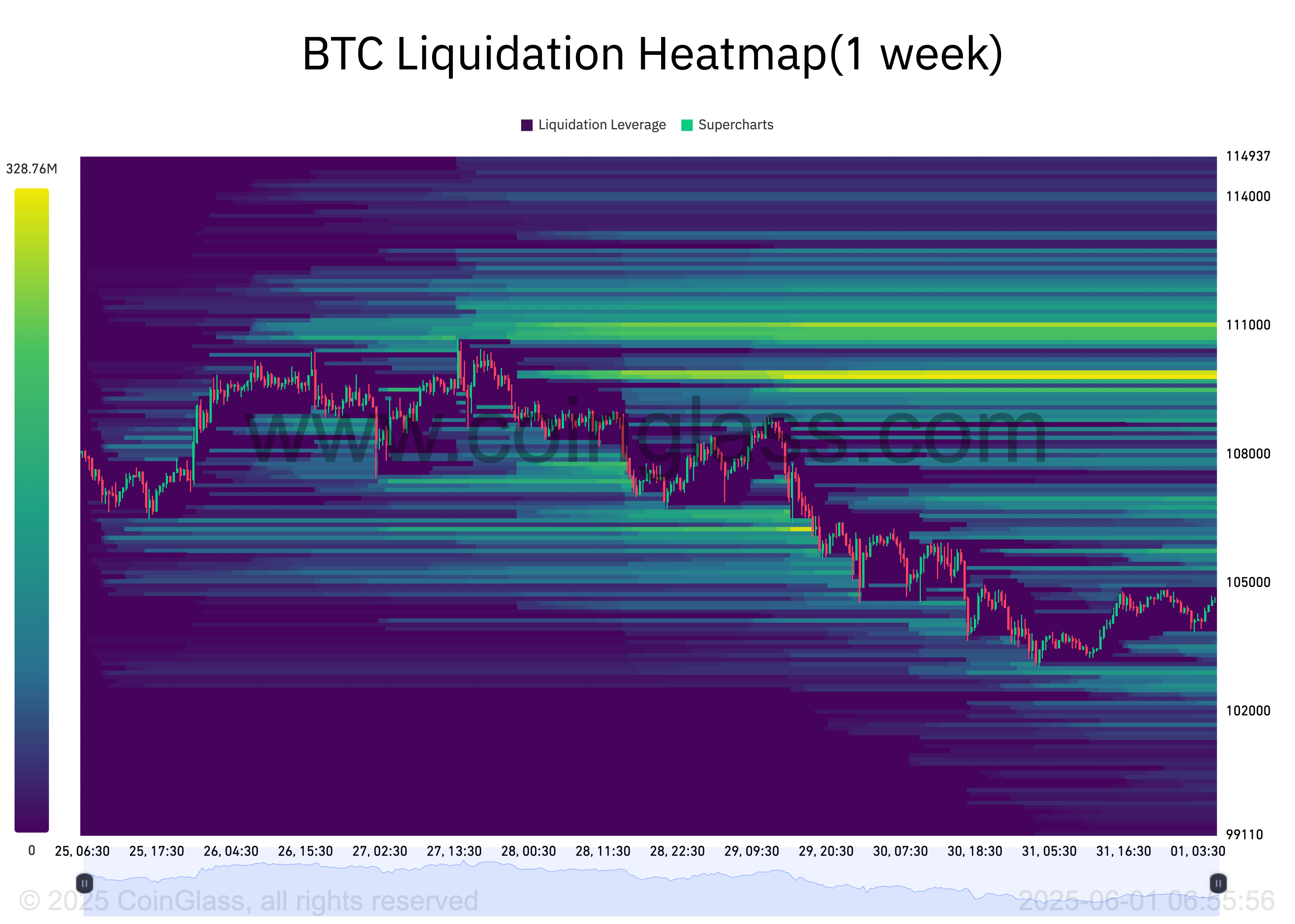 比特币清算热图评估显示,109,933美元价格区间存在显著流动性聚集。