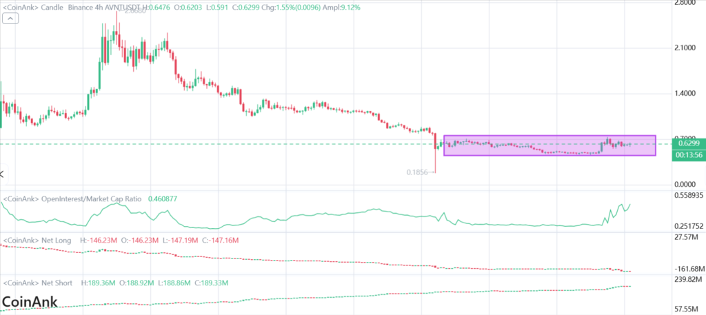 4小时图显示,自10月10日暴跌后,AVNT始终在0.46美元支撑位与0.75美元阻力位间震荡。10月19-21日多次测试0.75美元均遭遇抛压,形成当前箱体格局。