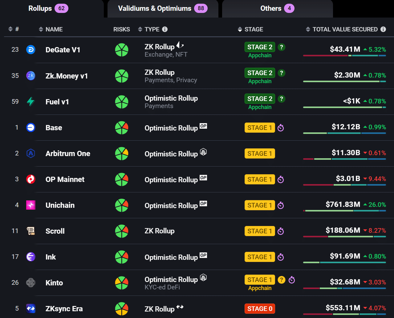根据L2 Beat的数据,截至2025年5月,只有三个rollup协议(包括Scroll和Taiko)达到了第二阶段。其他七个协议(如Base和Arbitrum)仍处于第一阶段,表明部分去中心化。Buterin的评论表明,如果这些协议的证明系统缺乏严格测试,可能会面临风险。他提出的模型将安全改进与降低证明系统失败的概率联系起来,敦促开发人员优先考虑稳健性,而不是基于检查表的里程碑。