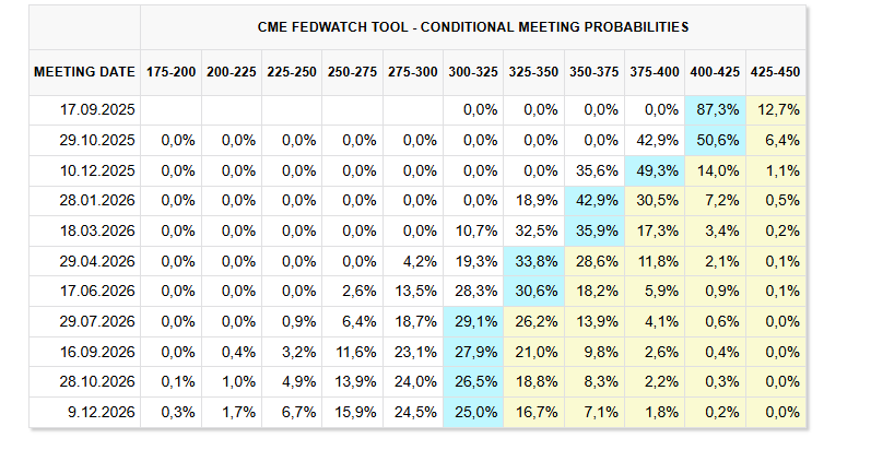 即将在21天23小时后公布的美联储决议,市场对降息的预期概率高达87%。全年预测显示有85%可能性实施两次降息。