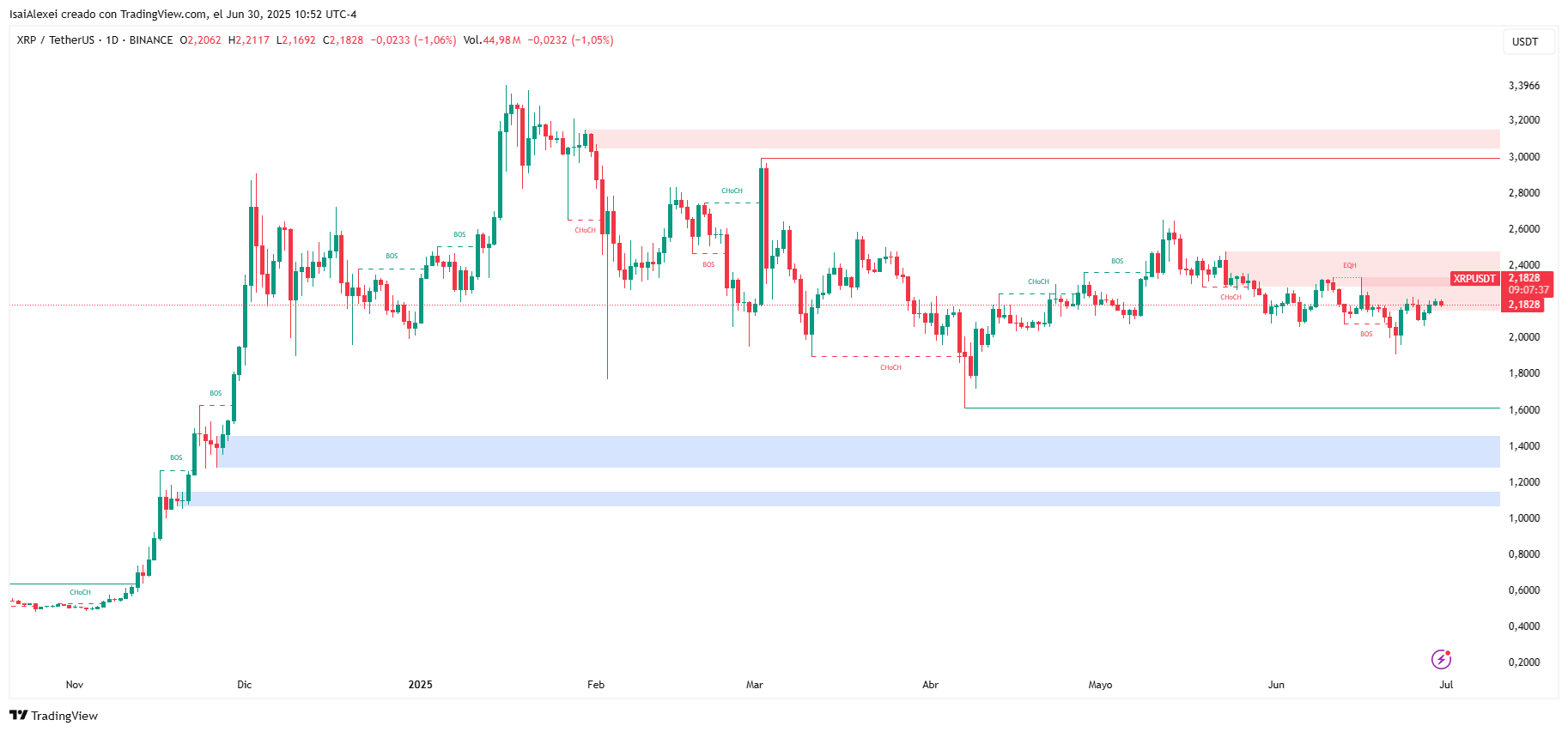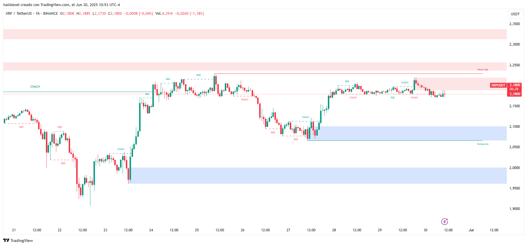截至发稿,XRP报价2.1856 USDT,日回调0.93%,周涨幅仍达8.42%。长期来看,随着主要法律风险解除,XRP年同比暴涨362.68%,现维持于近期高点附近震荡。