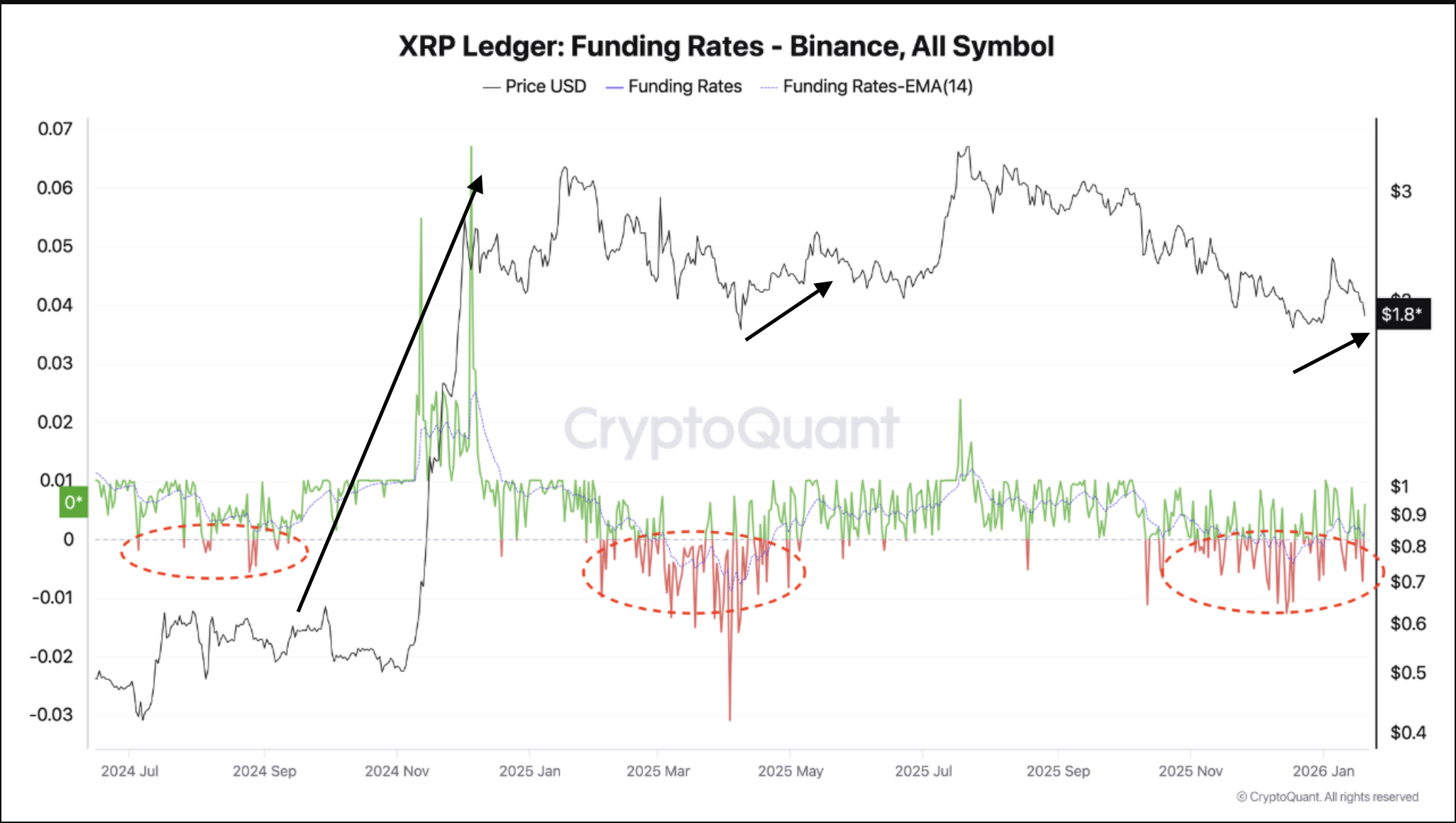 币安平台XRP资金费率重现2024年以来价格反弹前的典型走势