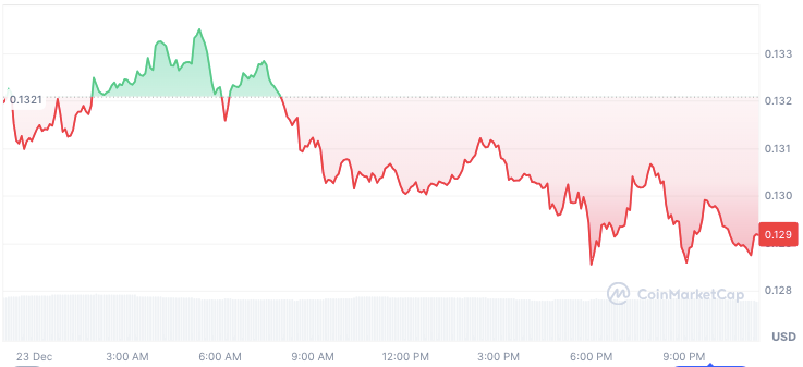 受整体市场疲软影响,狗狗币持续承压交易。近期该代币在0.1303美元至0.1349美元的狭窄区间内震荡后出现下跌。根据CoinMarketCap数据,DOGE现报0.129美元,24小时内跌幅达2.5%。交易量仍维持在约9.688亿美元水平,表明市场参与度在回调中保持稳定。