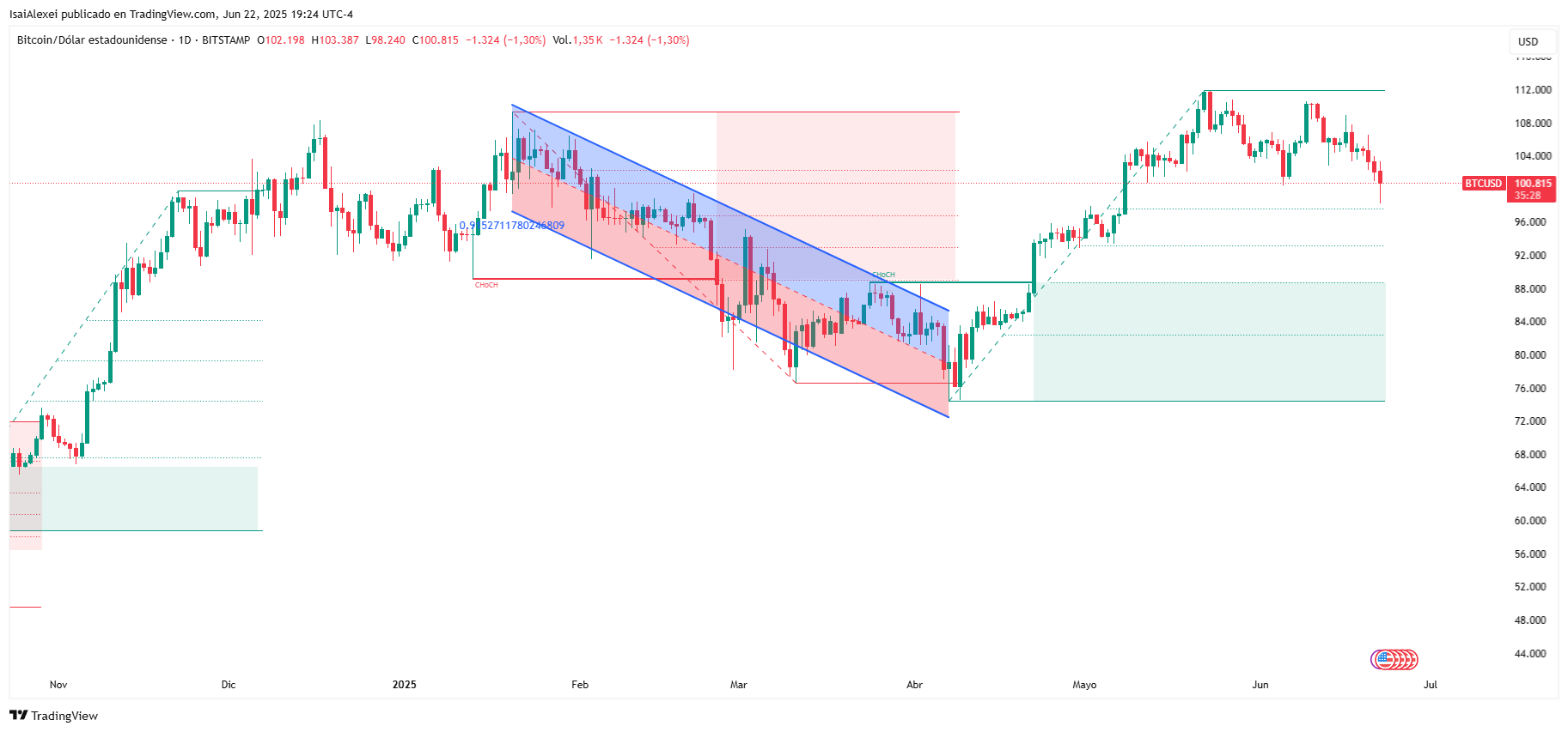 据Tradingview数据显示,比特币现报101,800美元,过去48小时经历剧烈波动。较近期创下的112,000美元历史高点回落逾8%,本月累计跌幅超过10%。本轮调整主要受宏观经济不确定性、ETF资金外流以及加密资产与股票市场的整体避险情绪驱动。