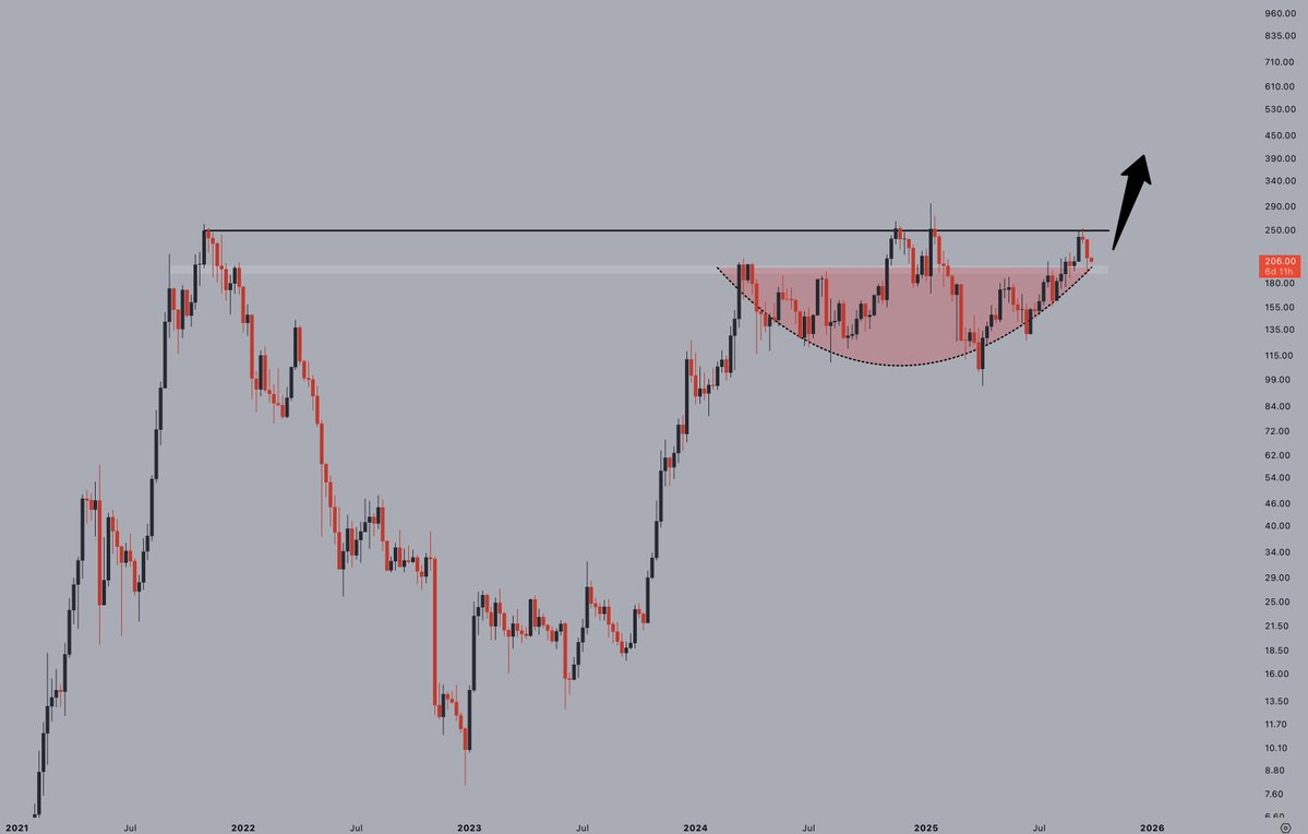 交易员强调该网络在DeFi和NFT领域的快速采用及强劲表现。社交媒体情绪保持看涨,部分分析师预测其至少有3-5倍增长潜力。这一背景强化了"顶级山寨币将跑赢比特币"进入下一周期的论点。