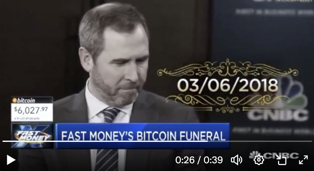 这家知名商业新闻网络在比特币价格暴跌后宣布其"死亡"。CNBC《快钱》节目主持人Melissa Lee和Dylan Ratigan为这个领先的加密货币举办了滑稽的哀悼仪式,连带"悼念"了Fundstrat的死多头分析师Tom Lee和Galaxy CEO Mike Novogratz等知名拥护者。