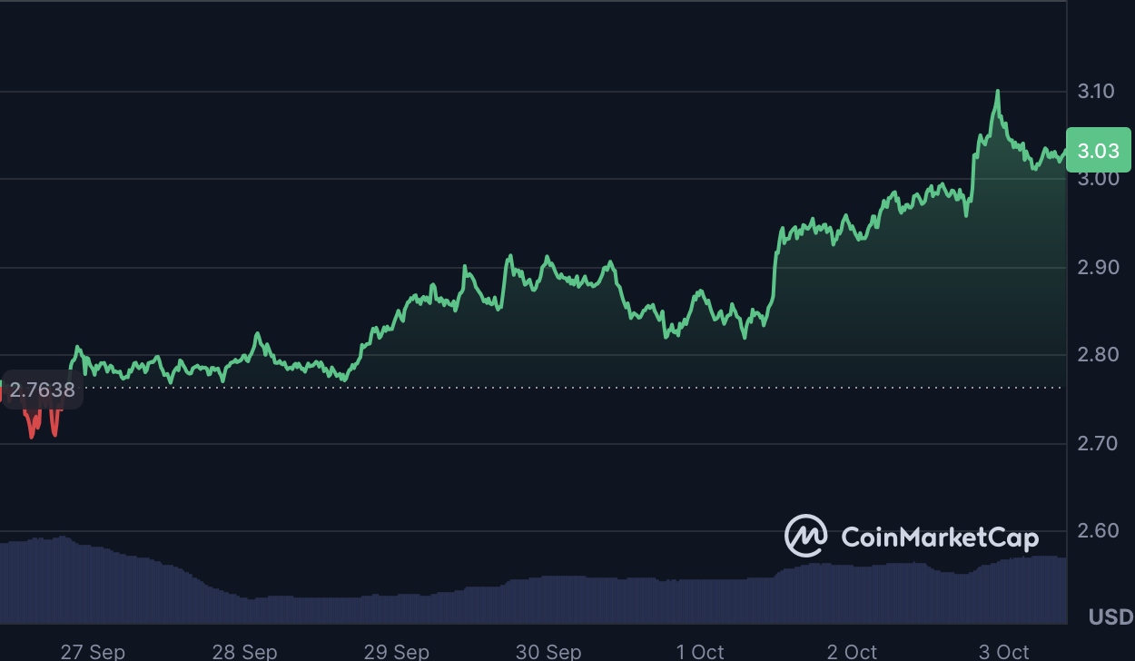 凭借其独特的监管历程,XRP长期处于机构辩论的核心。当前3.02美元的价格显示日内微涨0.06%,周涨幅达1.94%。尽管趋势向好,XRP仍在与上方阻力位博弈,表明市场热情尚未转化为爆发性动能。