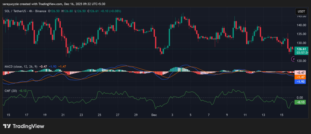 与此同时,Solana跌幅超过4.16%,且在尝试摆脱熊市陷阱时多次遭遇阻力。由于看跌情绪强烈,SOL从134.72美元高点跌至124美元低点区间。只有持续的看涨力量才能帮助该资产加速复苏。