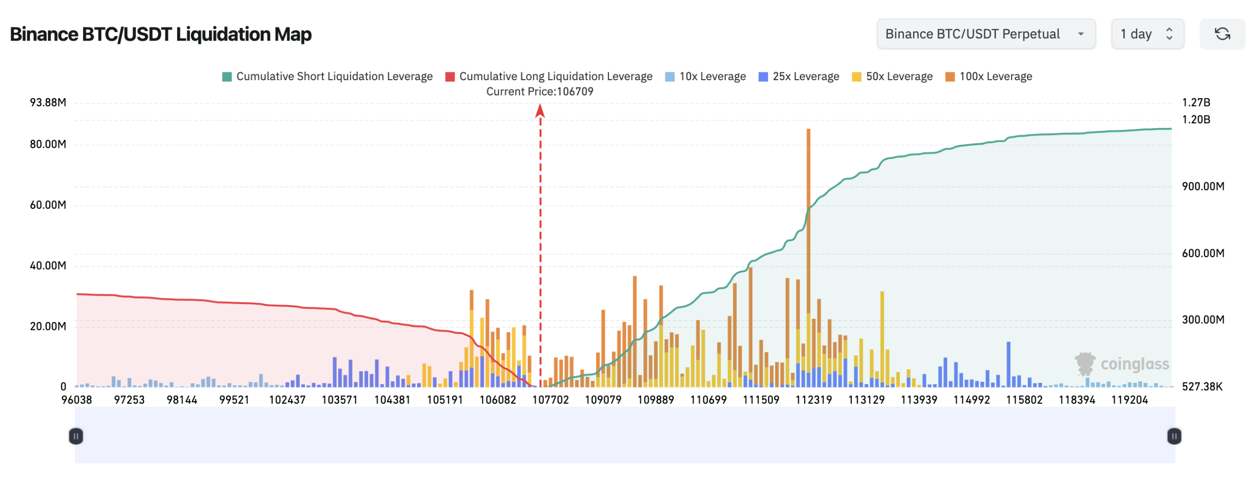加密货币市场紧张局势持续升级,比特币价格动态引发广泛关注。Coinglass数据显示,若比特币价格跌破105,000美元,主要中心化交易所的多头仓位清算总额可能高达11.2亿美元;反之若突破110,000美元,则将使价值12.6亿美元的空头仓位面临风险,凸显市场的两极张力。