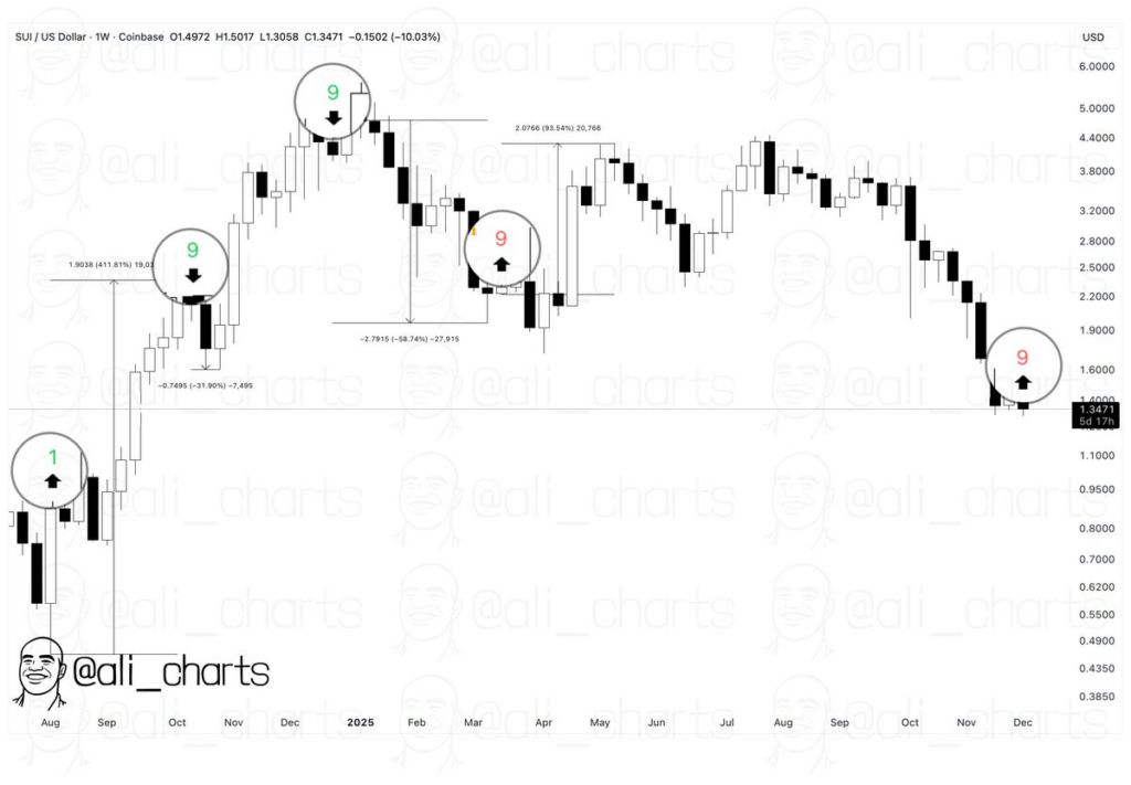 加密货币分析师Ali Martinez指出SUI价格目标位为2美元。他认为当TD序列指标出现买入信号时,代币可能迎来趋势反转上涨。