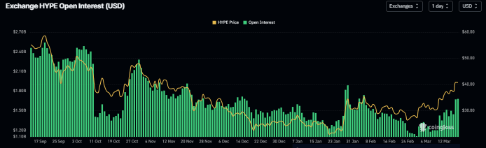 从4小时时间框架观察,HYPE于上周四成功突破了36.51美元的日线阻力位。该代币次日在该阈值附近获得支撑,随后在周一的交易时段中上涨约10%。