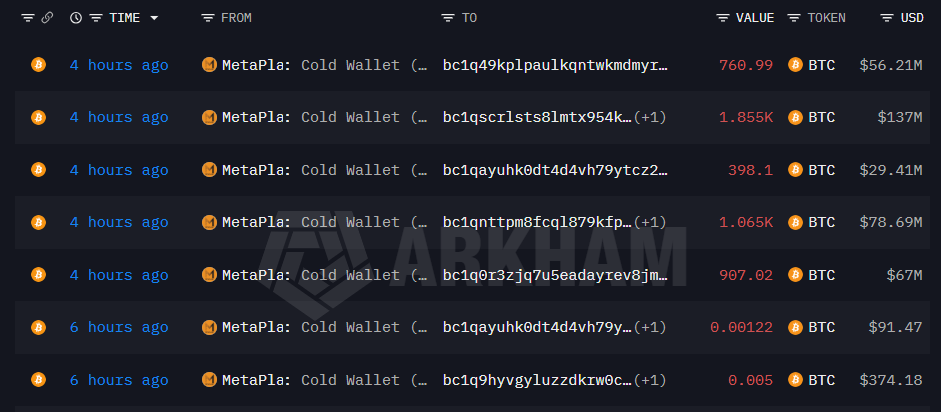 Metaplanet时隔三月转移价值3.68亿美元比特币
