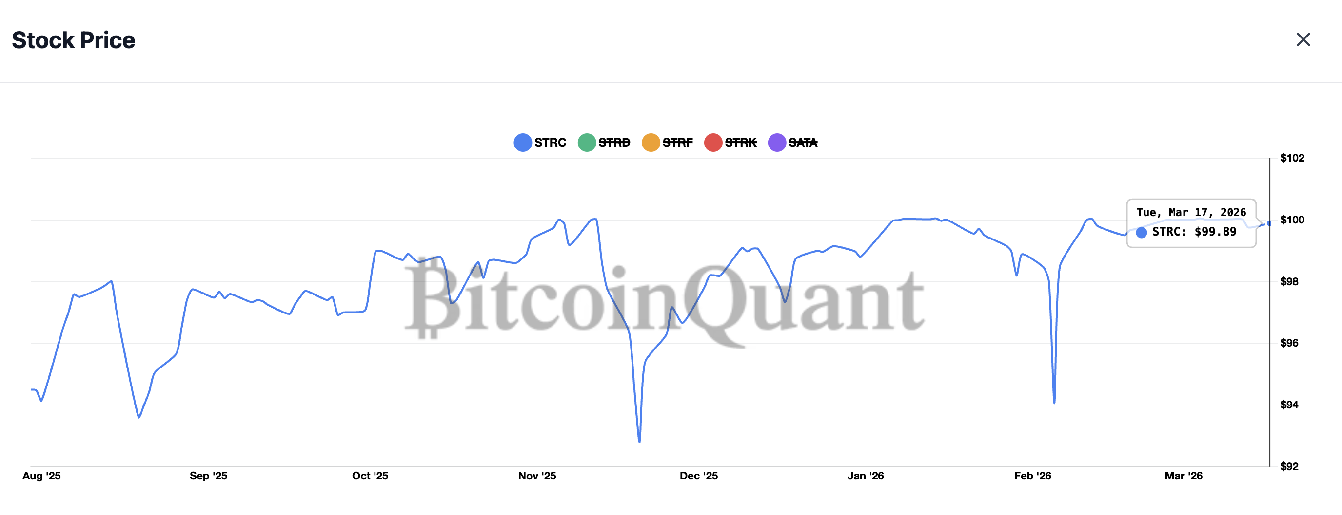 STRC 股价表现图。来源:BitcoinQuant.CO