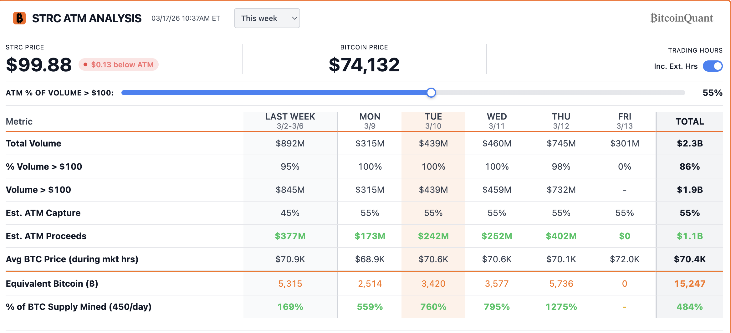 STRC 市价发行分析图。来源:BitcoinQuant.CO
