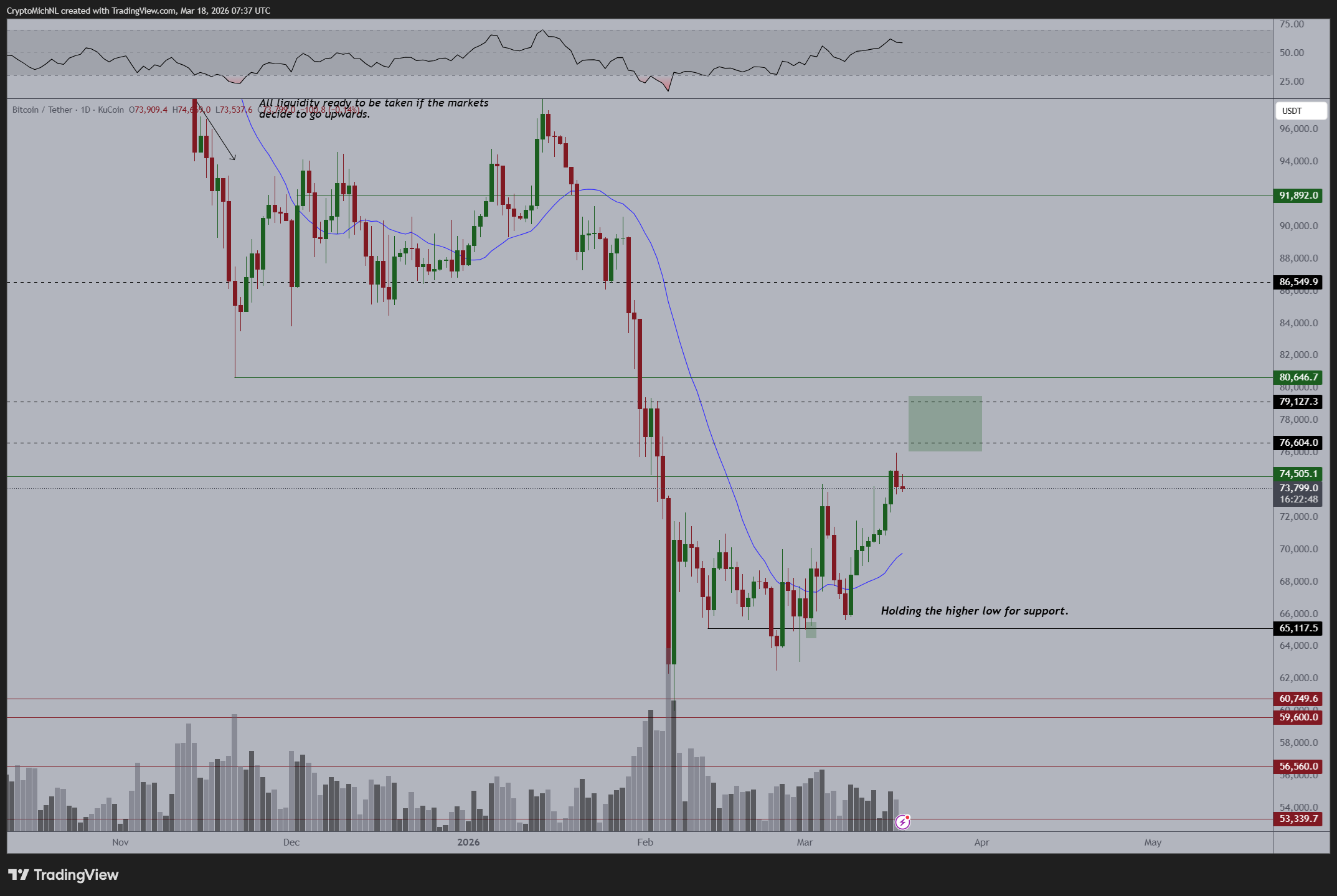 "本月比特币走势强劲,目前进入盘整阶段。这并非坏事,反而有利于后续发展,"他向关注者分析,"随着上方阻力位尚未突破,继续上探的可能性仍然存在。"