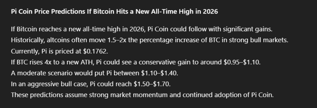 如果比特币在2026年进入强劲牛市并创历史新高,Pi币或将随之实现巨大涨幅。历史上,在牛市期间山寨币的涨幅通常是比特币涨幅的1.5至2倍。