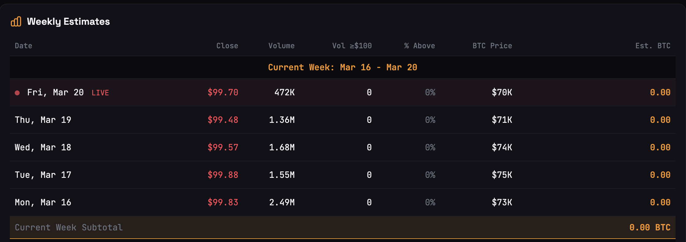 该公司本周未购买比特币,而在截至3月15日的一周购买了22,337枚BTC,前一周购买了17,994枚BTC。