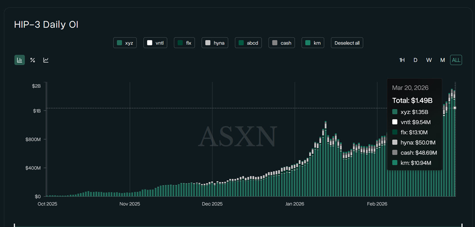 平台活跃度与代币热度同步攀升,HIP-3未平仓合约量在最近24小时内接近15亿美元即是明证。