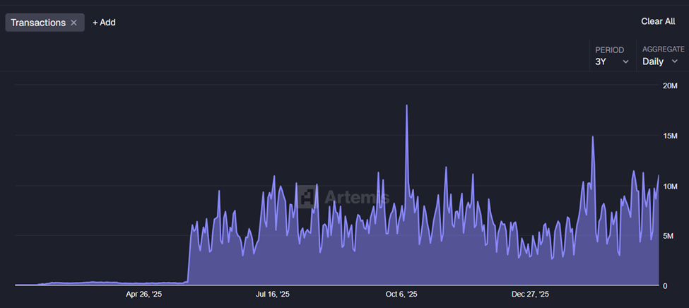 平台交易活跃度持续高位运行,周四单日交易量从周日的450万笔跃升至1100万笔以上。